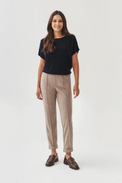 Dzianinowa bluzka damska o swobodnej formie, złapanej na dole ściągaczem. Wyróżnikiem modelu są ozdobne zakładki na ramionach, które nadadzą stylizacji niepowtarzalności. Wykonana z mieszanki lyocellu i wełny, świetnie się więc sprawdzi pod koniec lata i na pierwsze chłodniejsze dni sezonu przejściowego. Model dostępny w trzech wersjach kolorystycznych. Długość: regularna Fason: swobodny, z zakładkami Dekolt: w łódkę Rękawy: mini Wzór: gładka Polecany: na co dzień, do biura, na spotkania Wzrost modelki: 175 cm Prezentowany rozmiar ubrania: S/36 Producent KAN Sp. z o.o.