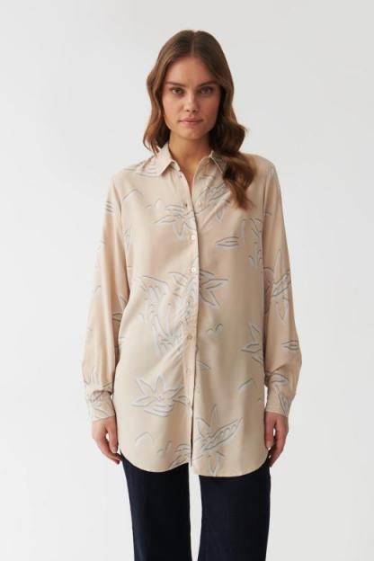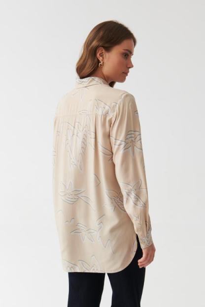 Długa, tunikowa koszula z nowoczesnym kwiatowym nadrukiem. Wykonana z leistej, wiskozowej tkaniny – niezwykle przyjemnej w dotyku i korzystnie układającej się na sylwetce. Idealna do legginsów i spodni, a także jako narzutka na plażę. Model dostępny w dwóch wersjach kolorystycznych. Długość: długa Fason: tunikowa Rękawy: długie Mankiety: z guzikiem Wzór: kwiaty Polecamy: na co dzień, na spotkania, na okres przejściowy i lato Wzrost modelki: 178 cm Prezentowany rozmiar ubrania: 36/S Producent KAN Sp. z o.o.