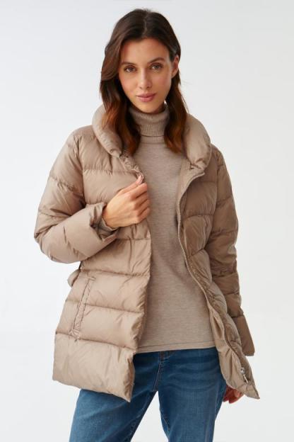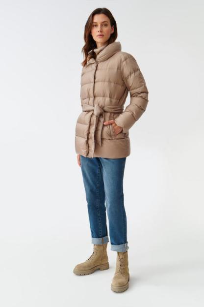 Kurtka damska puchowo – pierzowa z kobiecym wiązaniem w talii. Długością sięga do bioder. Zapinana na zamek i napy z przodu. Zapięcie to jest zakryte, dzięki czemu przód kurtki jest gładki. Wyposażona w dwie praktyczne kieszenie przednie, w których można trzymać ręce oraz niezbędne przedmioty. Szeroka stójka przy dekolcie chroni przed chłodem z zewnątrz. Kurtka ta jest doskonała na jesień oraz dodatnie temperatury zimowe jako uzupełnienie wielu stylizacji, w szczególności casualowych i sporty-chic. Model dostępny w dwóch wersjach kolorystycznych. Długość: do bioder Fason: klasyczny Rękawy: długie Kaptur: nie Zapięcie: zamek i napy Kieszenie: dwie z przodu Wzór: gładka Polecana: na jesień, wczesną zimę, na spacer, na wycieczki Wzrost modelki: 177 cm Prezentowany rozmiar ubrania: 36/S Producent KAN Sp. z o.o.