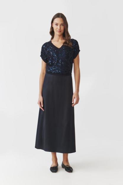Klasyczny sweter damski o kroju kamizelki z dekoltem typu „V” i krótkim rękawem w stylu kimono. Cekinowe wykończenie nadaje modelowi niepowtarzalnego charakteru. Sweter będzie idealnym wykończeniem eleganckiej stylizacji z koszulą i tkaninowymi spodniami. Sprawdzi się na wieczorne wyjście lub przyjęcie w gronie przyjaciół. Fason: Klasyczny Rękaw: Krótki, kimono Dekolt: Typu „V” Wykończenie: Ściągacz Wzór: Cekiny Polecamy: Do eleganckich stylizacji, na przyjęcie, do tkaninowych spodni Wzrost modelki: 176 cm Prezentowany rozmiar ubrania: 36/S Producent KAN Sp. z o.o.